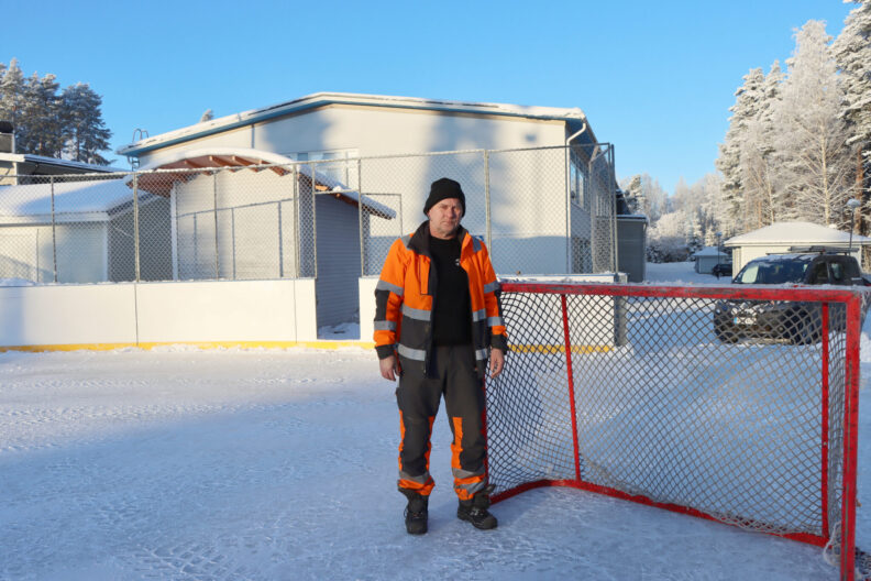 Haukivuoren Moniapu vastaa muun muassa kylän kaukalon jäädyttämisestä. Pakkaset tulivat tarpeeseen, niin jään sai hyvään kuntoon, Jari Nikolajew kertoo. Kuva: Niko Takala
