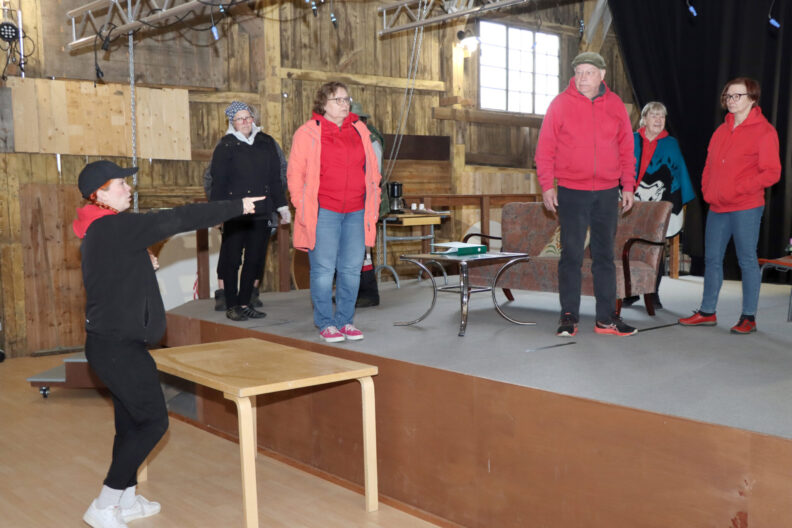 Teatteri Henkireikä esiintyy Wanhan sahan kulttuuriklubilla. Harjoituskaudella 2025 ohjaaja Salla Marttinen opasti näyttelijöitä tilassa.